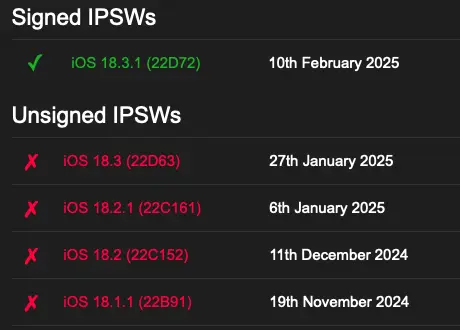 Apple ปิดไม่ให้ดาวน์เกรดกลับไป iOS 18.3 ทำให้ผู้ใช้ที่อัปเดตเป็น iOS 18.3.1 ไปแล้ว จะไม่สามารถดาวน์เกรดกลับไปติดตั้ง iOS 18.3 ได้อีกต่อไป