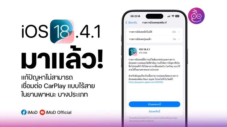 iOS 18.4.1 มาแล้ว! อัปเดตความปลอดภัย และแก้ปัญหา CarPlay แบบไร้สาย