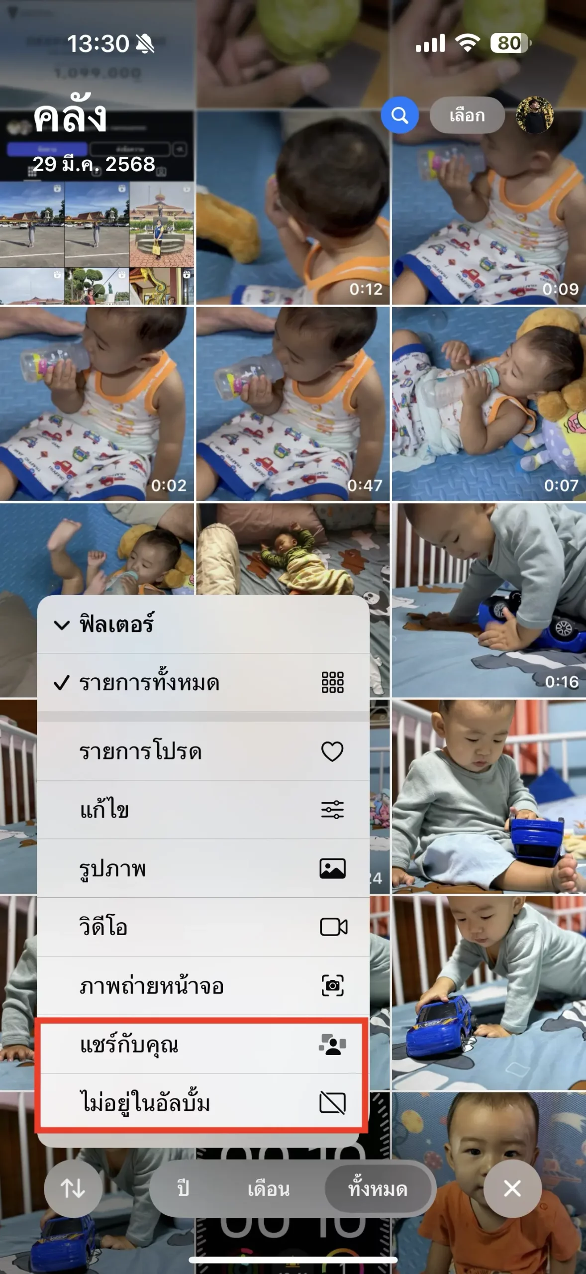 เพิ่มตัวเลือก “แชร์กับคุณ” และ “ไม่อยู่ในอัลบั้ม” ในฟิลเตอร์หน้าคลังรูปภาพ