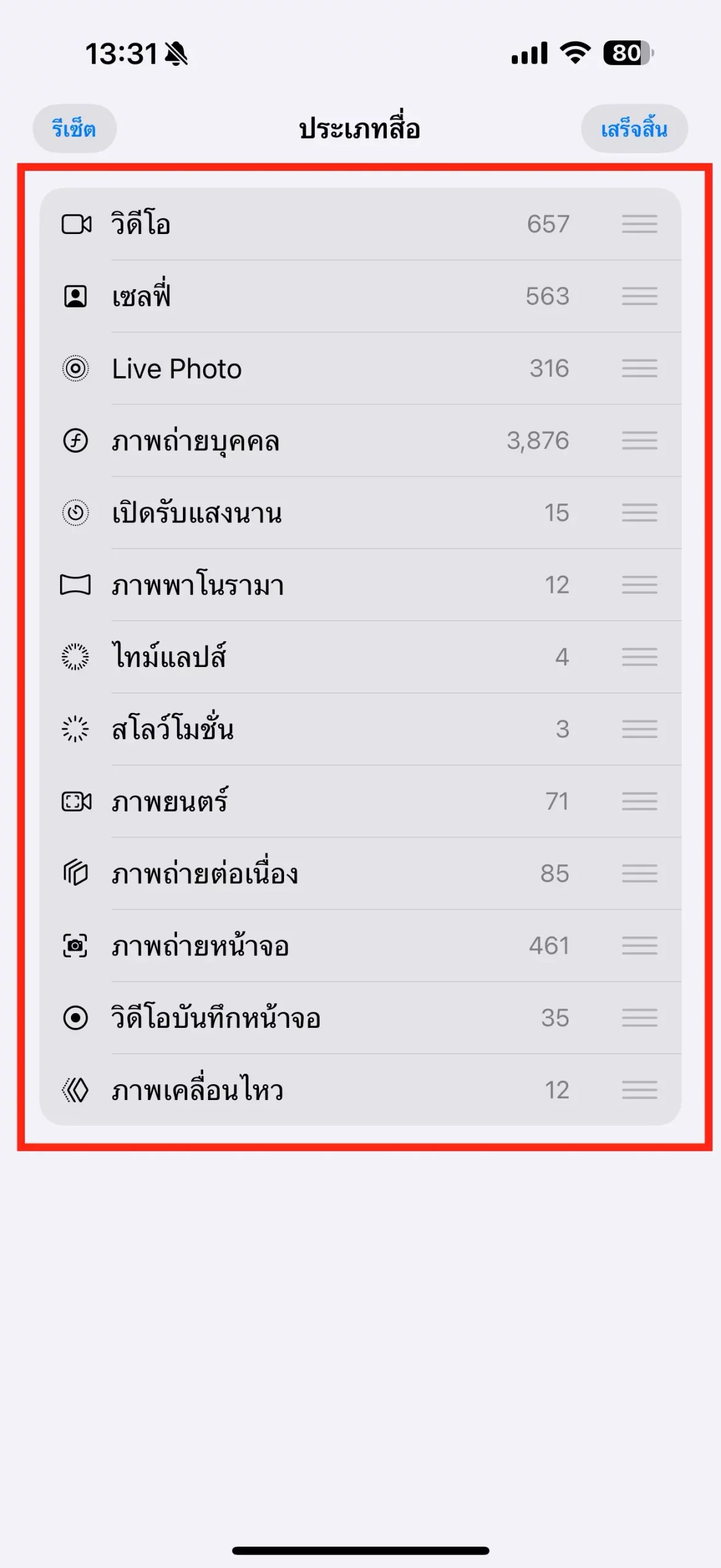 จัดลำดับประเภทรูปภาพในส่วนประเภทสื่อ, รายการอื่น และคอลเลกชันได้