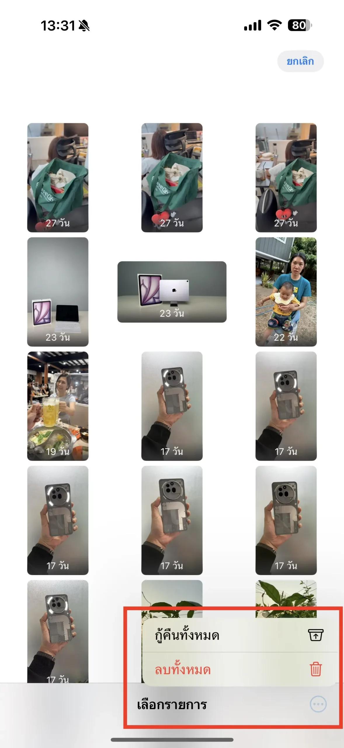 ใน “รายการลบล่าสุด” จะมีเมนูในการลบรูปภาพทั้งหมด หรือกู้คืนรูปภาพทั้งหมด ด้วย!