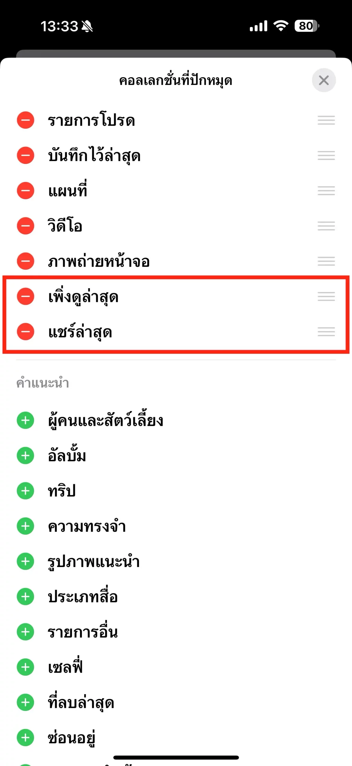 ปิดการใช้งานคอลเลกชัน “เพิ่งดูล่าสุด” และ “แชร์ล่าสุด” ได้