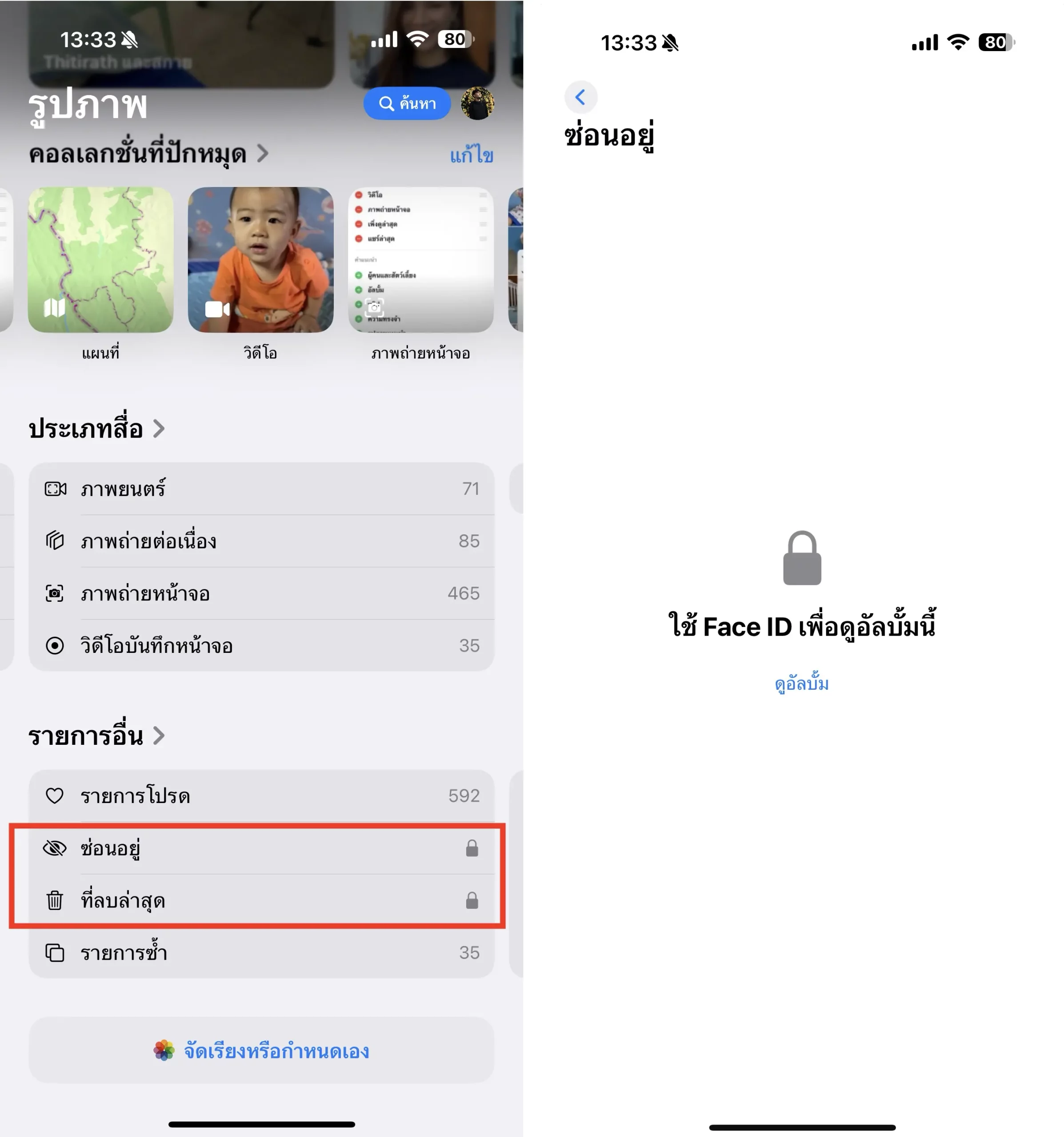 - รูปภาพที่ซ่อนอยู่จะไม่รวมสำหรับนำเข้าไปยัง Mac หรือ PC อีกต่อไปหากใช้ Face ID เปิดใช้งานอยู่ในการตั้งค่ารูปภาพ
