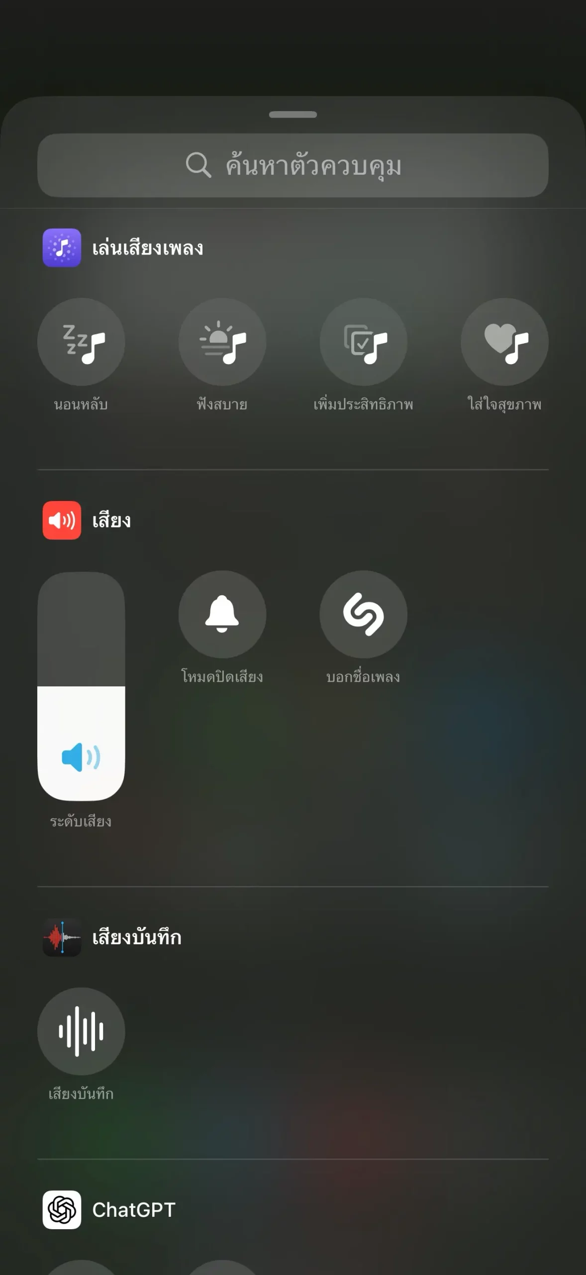 ใน Control Center จะมีตัวเลือกส่วนควบคุมใหม่ชื่อว่า “การเล่นเสียงเพลง” (Ambient Music) มีให้เลือก 4 แบบได้แก่ การนอนหลับ ฟังสบาย เพิ่มประสิทธิภาพ และใส่ใจสุขภาพ
