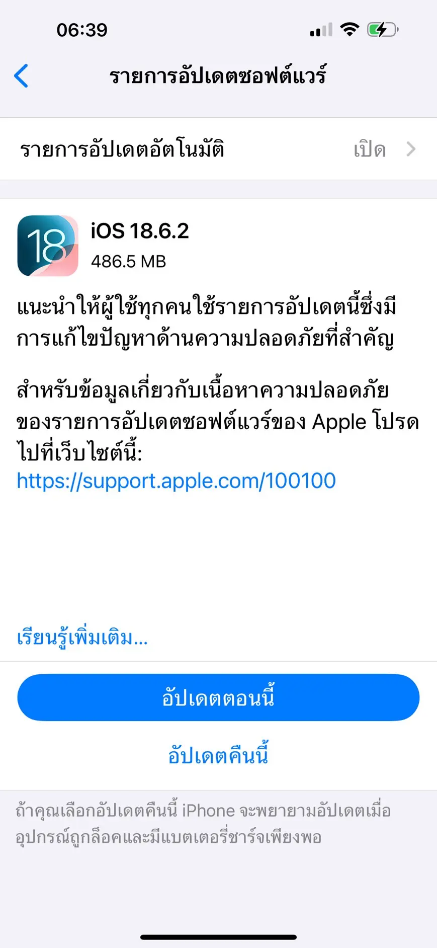ที่มา: https://www.macrumors.com/2025/08/20/ios-18-6-2-vulnerability-fix/