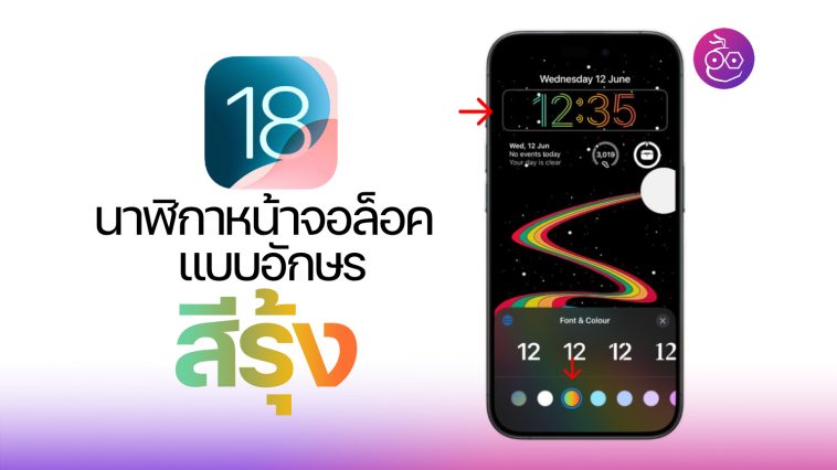iOS 18 นาฬิกาหน้าจอล็อค ตั้งค่าใช้แบบอักษรสีรุ้งได้!