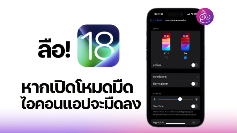 โหมดมืด (Dark Mode) เปิดตัวครั้งแรกใน iOS 13 ซึ่งเมื่อเปิดใช้งานแล้ว จะทำให้องค์ประกอบบางส่วนของหน้าจอโฮม เช่น Dock และโฟลเดอร์ มืดลง และตามรายงานล่าสุด iOS 18 จะทำได้มากกว่านั้น ด้วยการเพิ่มโทนสีเข้ม หรือสีดำให้กับไอคอนแอปบนหน้าจอโฮม ทำงานอัตโนมัติเมื่อเปิดใช้งานโหมดมืด
