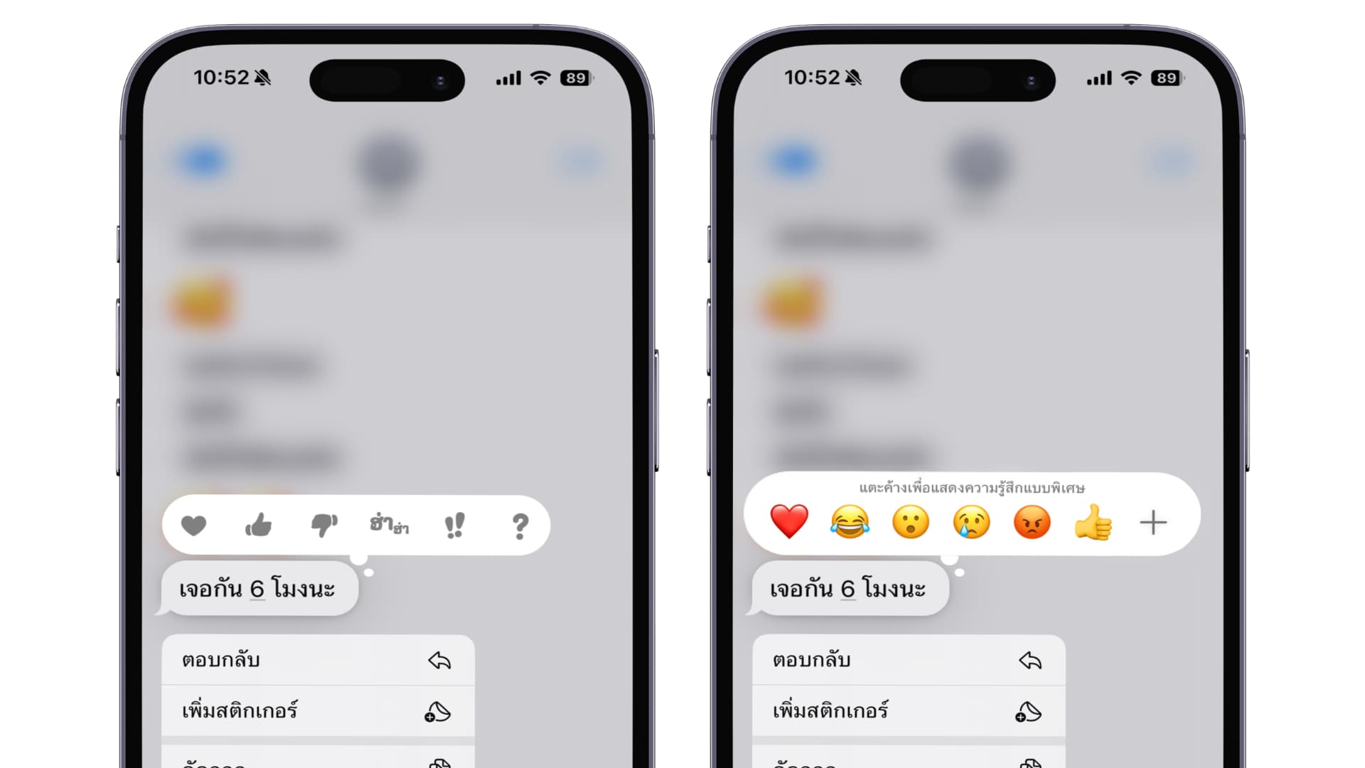 เมนู “ตอบกลับ (Tapback)” เปิดตัวครั้งแรกใน iOS 10 โดยมีไอคอนหรืออิโมจิสำหรับการรีแอคข้อความเพียง 6 แบบเท่านั้น ได้แก่ หัวใจ นิ้วโป้งขึ้น นิ้วโป้งลง สัญลักษณ์ “HA HA” เครื่องหมายตกใจ และเครื่องหมายคำถาม ที่ค่อนข้างเรียบง่าย