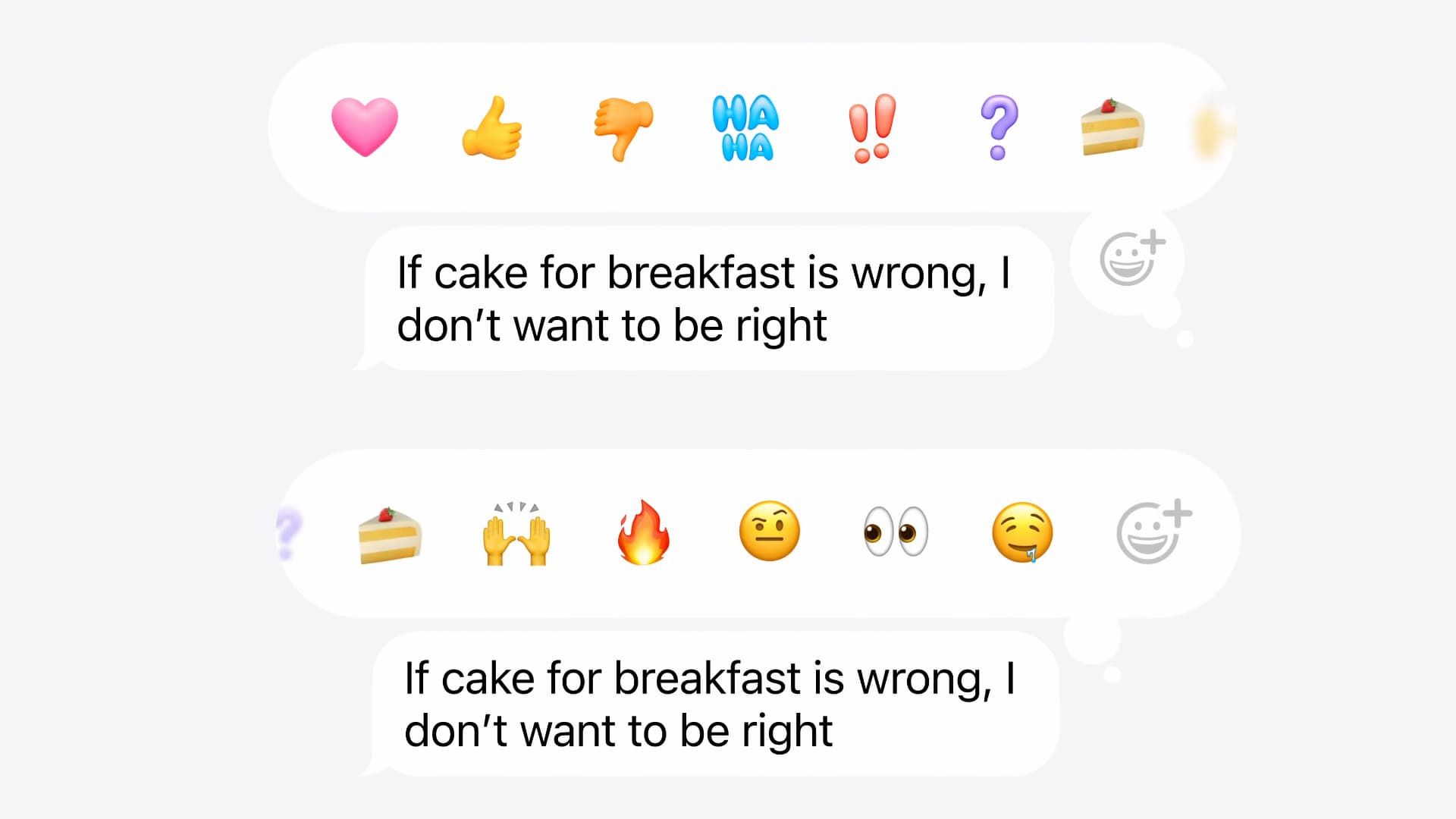 iMessage มีฟีเจอร์ Tapback เอาไว้ใช้ตอบกลับข้อความ โดยการแปะอิโมจิลงไปที่ข้อความของเพื่อน และใน iOS 18 มีการอัปเดตอิโมจิการตอบกลับที่มีอยู่แล้วให้มีสีนสันสวยงาม หรือผู้ใช้จะเลือกใช้อิโจที่มีในเครื่องกว่าพันแบบก็ได้