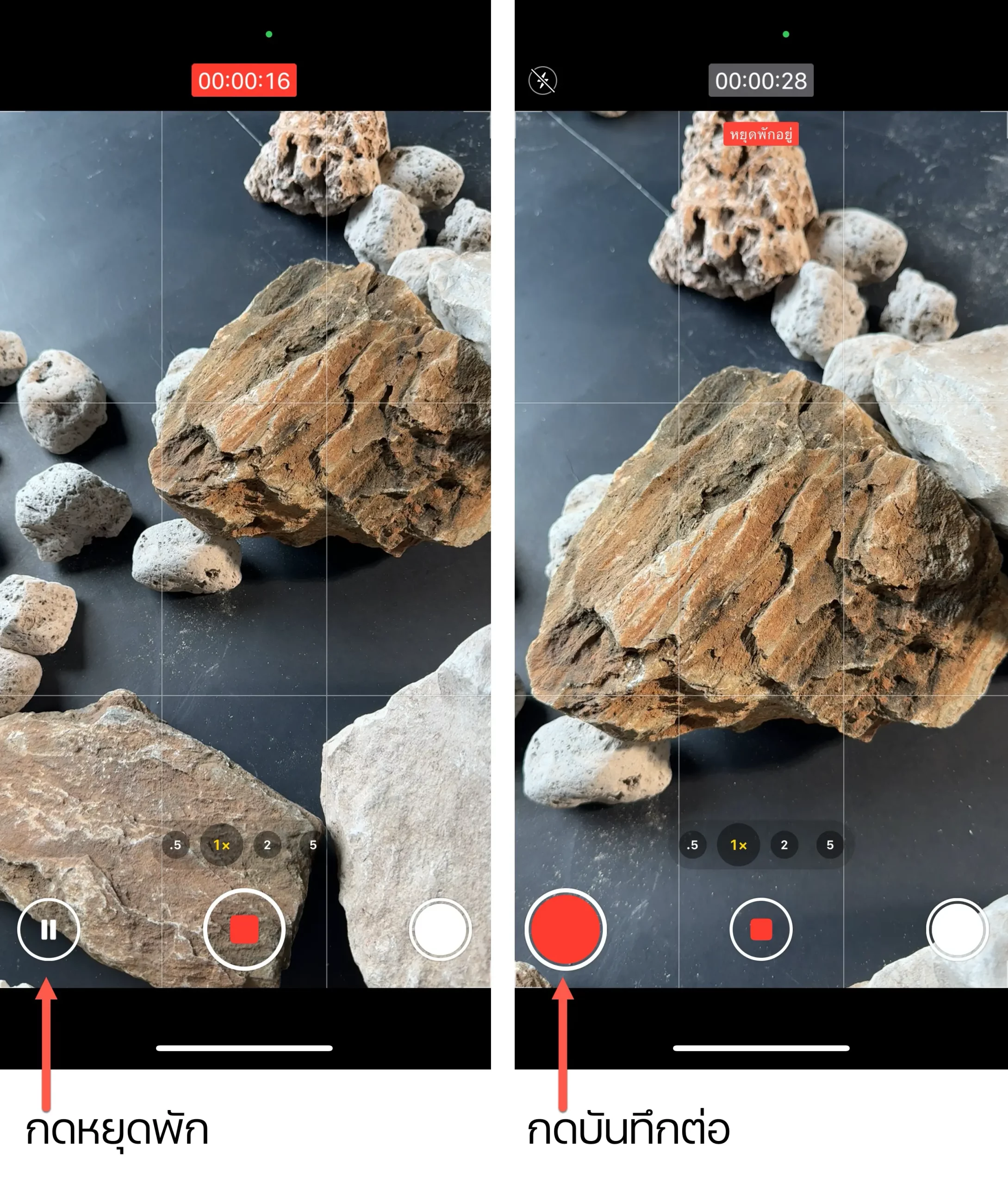 กดหยุดพักระหว่างบันทึกวิดีโอ