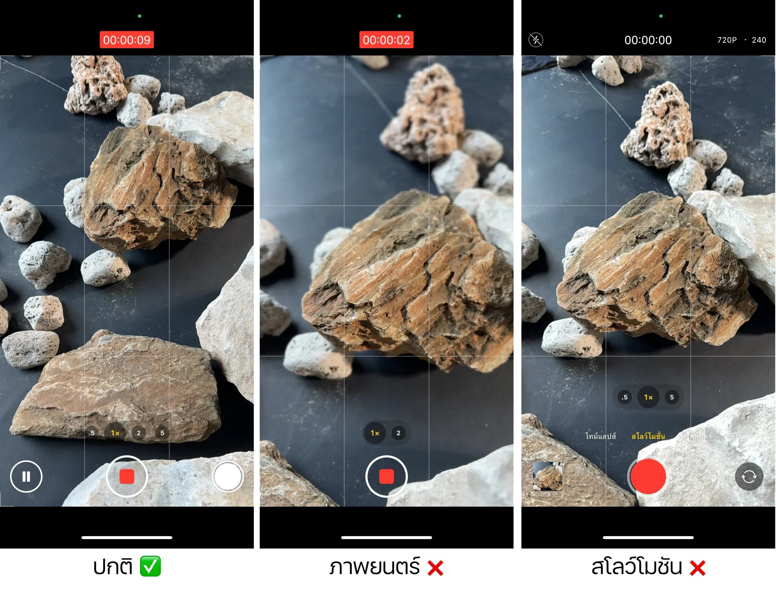 ข่าวดีก็คือ ใน iOS 18, Apple ได้เพิ่มฟีเจอร์การหยุดพักระหว่างบันทึกวิดีโอให้แล้ว โดยถ้าผู้ใช้เริ่มบันทึกวิดีโอ จะมีไอคอนหยุดพัก (II) แสดงอยู่ที่ด้านข้างปุ่มบันทึก, ถ้าหยุดพักการบันทึกวิดีโอจะมีข้อความด้านบนแสดงว่า “หยุดพักอยู่”