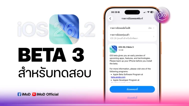 Apple ปล่อย iOS 26.2 Beta 3 ให้ทดสอบ