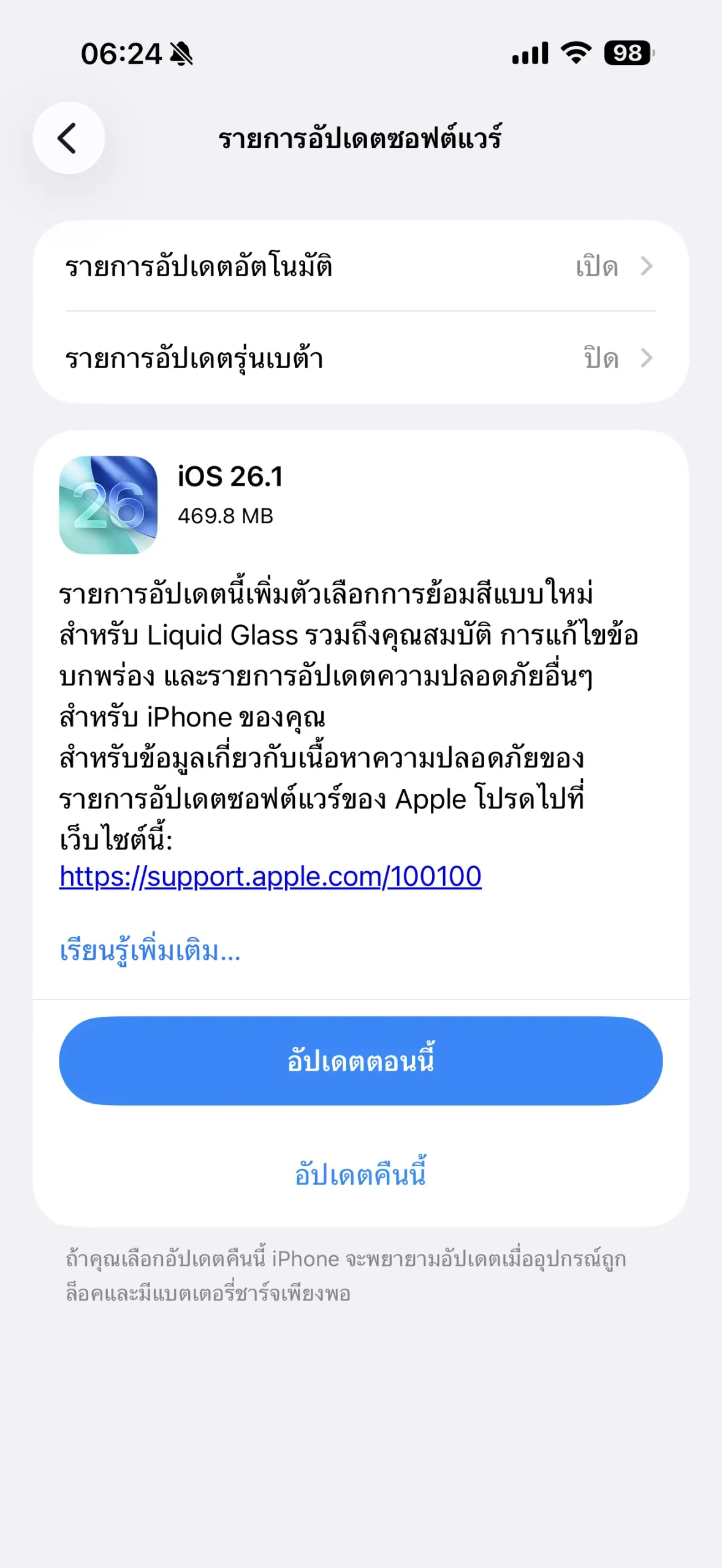 อัปเดตเป็น iOS 26.1