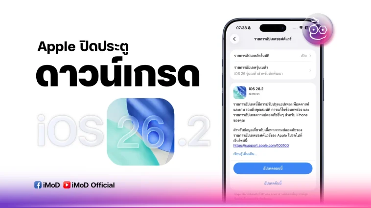 Apple ปิดประตูดาวน์เกรดกลับไป iOS 26.2 แล้ว (Stop Signing)