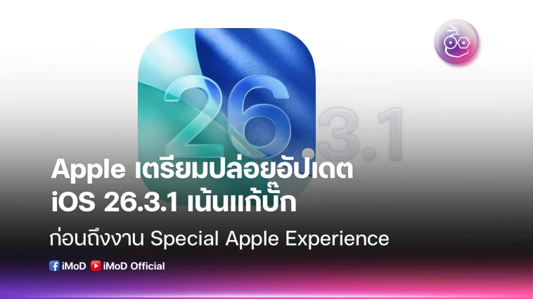 iOS 26.3.1 อาจเป็นการอัปเดตเล็ก ๆ ที่แก้ไขบั๊ก และหรือช่องโหว่ด้านความปลอดภัย และน่าจะปล่อยออกมาภายในสองสัปดาห์ข้างหน้าก่อนงาน Special Apple Experience ที่จัดขึ้นวันที่ 4 มี.ค. 2026