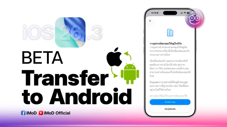 ใน iOS 26.3 (ยังเป็น Beta ณ วันที่เผยข้อมูล) มีฟีเจอร์ใหม่อย่าง Transfer to Android ให้ผู้ใช้ iPhone สามารถย้ายข้อมูลตัวเครื่องไป Android ได้ง่ายขึ้น