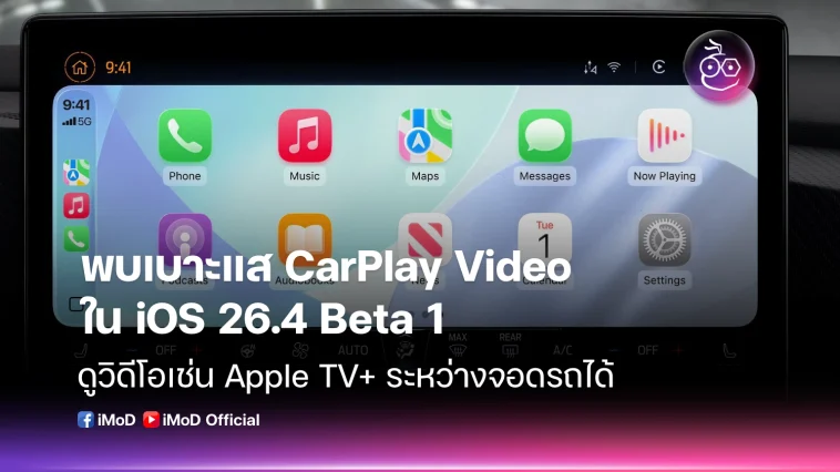 พบเบาะแส iOS 26.4 เตรียมรองรับ CarPlay Video ให้ผู้ใช้สามารถดูวิดีโอบนหน้าจอในรถได้ขณะจอดอยู่ โดยรองรับ Apple TV+ เป็นแอปแรก