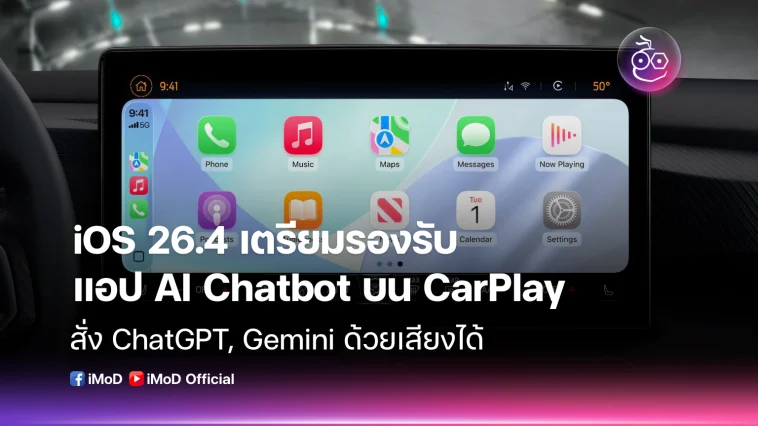 iOS 26.4 จะเปิดให้นักพัฒนาสามารถปล่อยแอป AI Chatbot อย่าง ChatGPT, Claude และ Gemini รองรับ CarPlay ได้เป็นครั้งแรก ผู้ใช้สามารถสั่งการได้ด้วยเสียง ระหว่างขับรถ