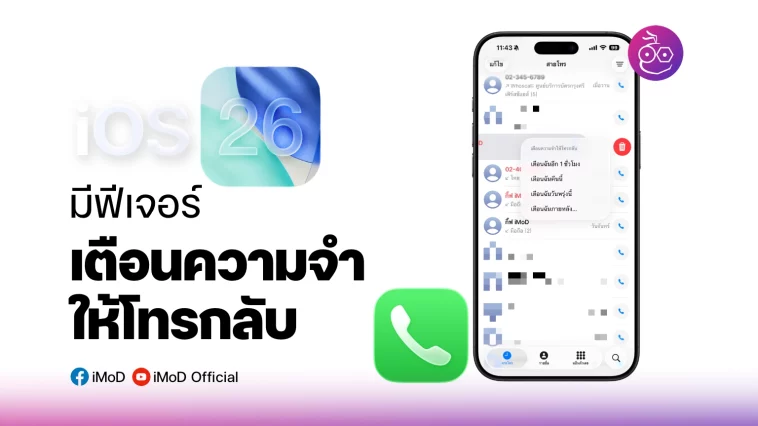 iOS 26 (ตอนนี้เป็น Beta) เพิ่มฟีเจอร์ให้ผู้ใช้ตั้งค่าเตือนความจำให้โทรกลับได้ ในกรณีที่ไม่ได้รับสาย หรือวางแผนจะคุยภายหลัง หรืออื่น ๆ