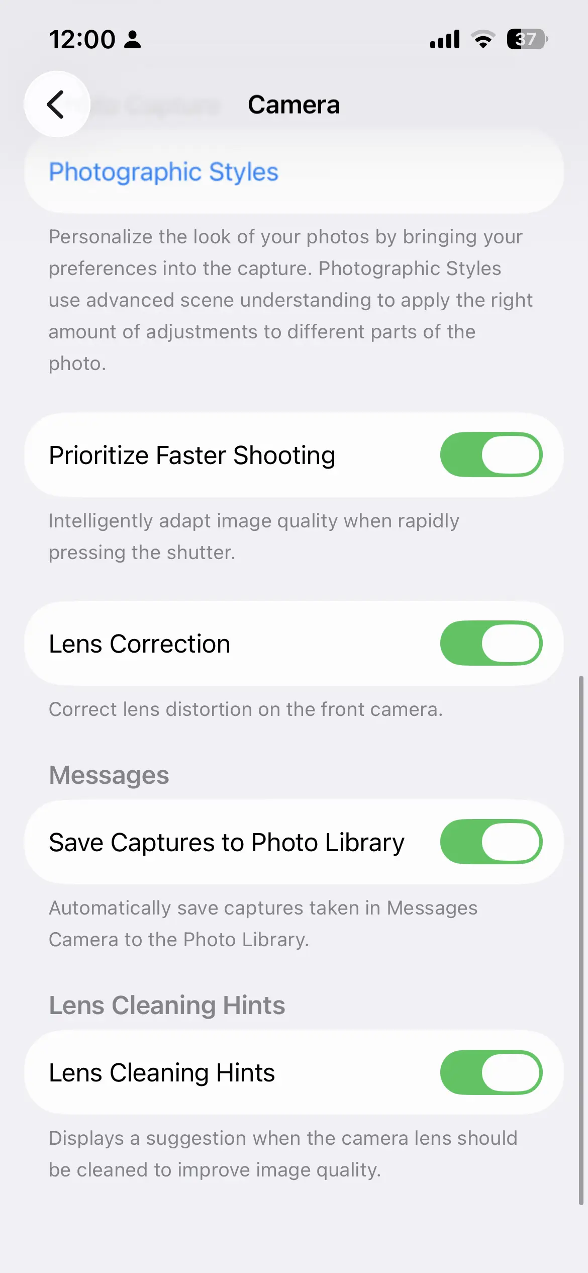 ในเมนูการตั้งค่ากล้องบน iOS 26 มีการเพิ่มเมนูใหม่ที่มีชื่อว่า Lens Cleaning Hints หรือการแจ้งเตือนเมื่อเลนส์กล้องสกปรก ถือว่ามีประโยชน์มากครับ