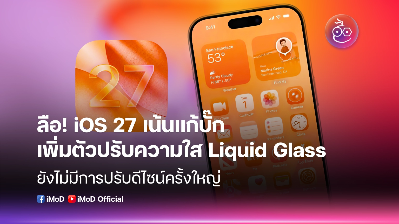 ลือ iOS 27 อาจเน้นแก้บั๊ก, ปรับปรุง Liqiuid Glass, เพิ่ม Slider ปรับความใสทั้งระบบ