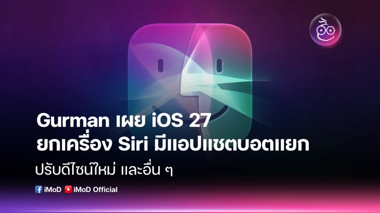 Mark Gurman เผยว่า Apple กำลังทดสอบแอปแชตบอต Siri แบบแยกต่างหากบน iOS 27 โดย Apple มีแผนพัฒนา Siri เวอร์ชันแชตบอตเพื่อแข่งกับ Claude และ ChatGPT ซึ่ง Siri รุ่นใหม่นี้อาจเข้าถึงได้ผ่านแอปเฉพาะ