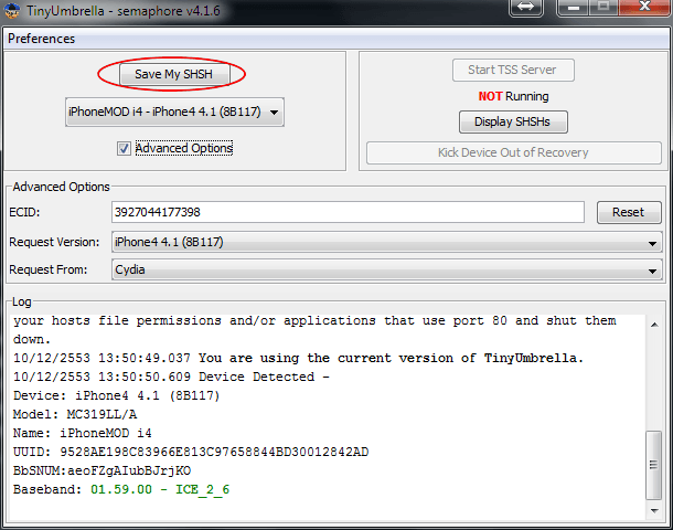 วิธีการเก็บ ECID SHSH ด้วย TinyUmbrella >> อ่านได้ที่นี่
