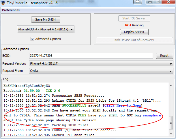 รอ จะพบข้อความแบบนี้แสดงว่าเก็บ ECID SHSH ของ iOS 4.1 เอาไว้เรียบร้อยแล้ว