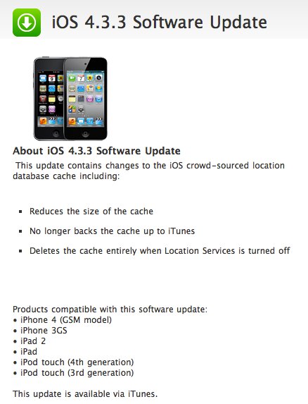 สำหรับผู้ที่ใช้อุปกรณ์ต่อไปนี้ สามารถอัพเดท iOS 4.3.3 ได้ผ่านทาง iTunes หรือ Link ด้านล่าง