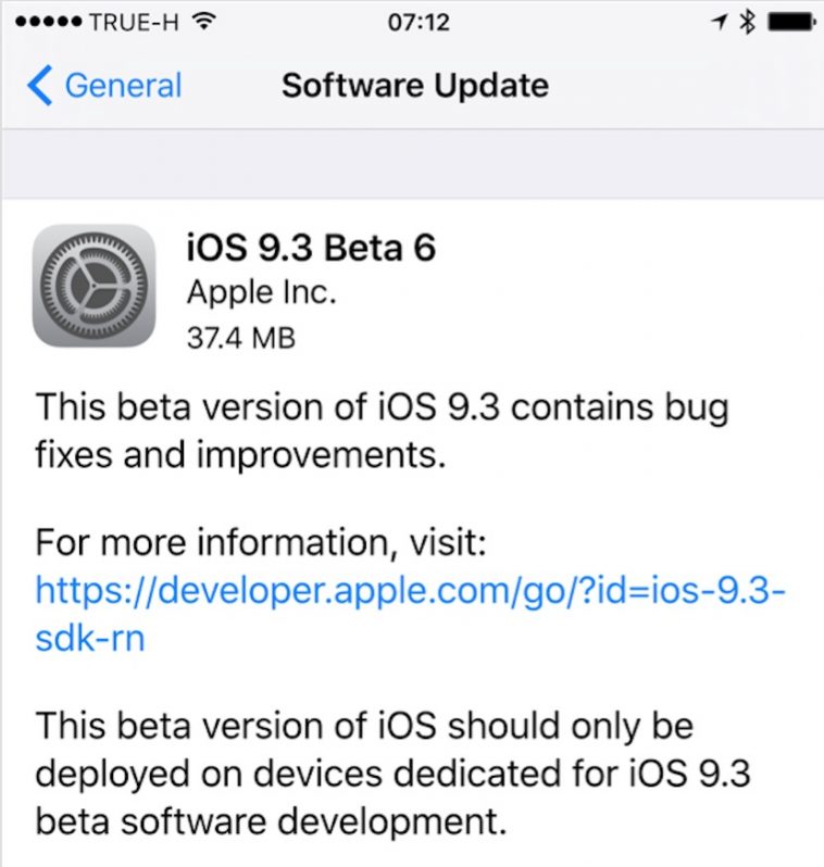 เมื่อวันที่ 2 มีนาคม 2559 ที่ผ่านมาทาง Apple ปล่อย iOS 9.3 Beta 5 ให้นักพัฒนาได้ทดสอบตอนแรกก็นึกว่าจะเป็นเบต้าตัวสุดท้ายแล้วแต่ที่ไหนได้วันนี้ 8 มีนาคม 2559 Apple ปล่อย Beta 6 ออกมาให้นักพัฒนาได้อัปเดต
