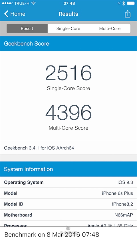ผล Benchmark ของ iOS 9.3 Beta 6 บน iPhone 6s Plus