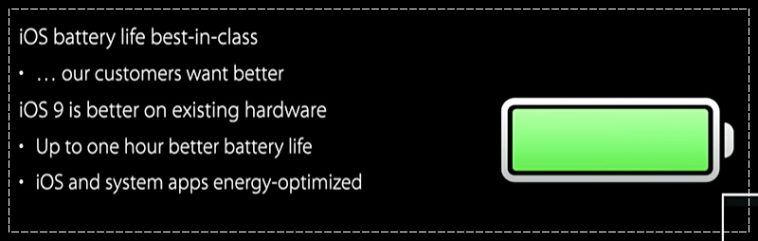 กล่าวสรุปคือทาง Apple เองได้ออกเครื่องมือพัฒนา Xcode เพื่อรองรับการพัฒนา App ที่ประหยัดพลังงานเอาไว้รอแล้ว และหากเป็นการใช้งานทั่วไปเฉลี่ยแล้วผู้ใช้งาน iOS 9 จะสามารถใช้งานแบตเตอรี่ได้ยาวนานกว่าเดิมราวหนึ่งชั่วโมง