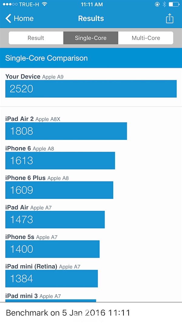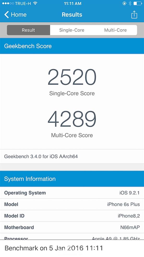 ผลการทดสอบประสิทธิภาพด้วย Geekbench 3 ของ iOS 9.2.1 beta 2 ได้ดังนี้