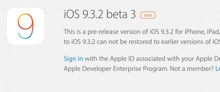 Apple ปล่อย iOS 9.3.2 beta 3 ให้เหล่านักพัฒนาได้ทดสอบชี้แก้ไขจุดบกพร่องหลักสองจุดใน Dictionary และ Simulator เหล่านักพัฒนาสามารถอัปเดตได้ผ่าน Software Update ของ iOS