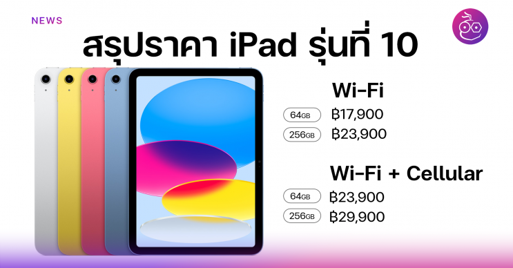 iPad รุ่นที่ 10 ได้เปิดตัวอย่างเป็นทางการเป็นที่เรียบร้อยแล้วผ่านทางหน้าเว็บไซต์ของ Apple บทความนี้จะมาสรุปราคาของ iPad รุ่นที่ 10 ทั้งทางฝั่งรุ่น Wi-Fi และ Wi-Fi + Cellular ให้ดูไปพร้อมกัน