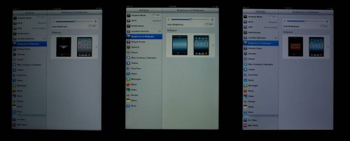 iPad 3 (ซ้าย) iPad 3 จอหลือง (กลาง) iPad 2 (ขวา)