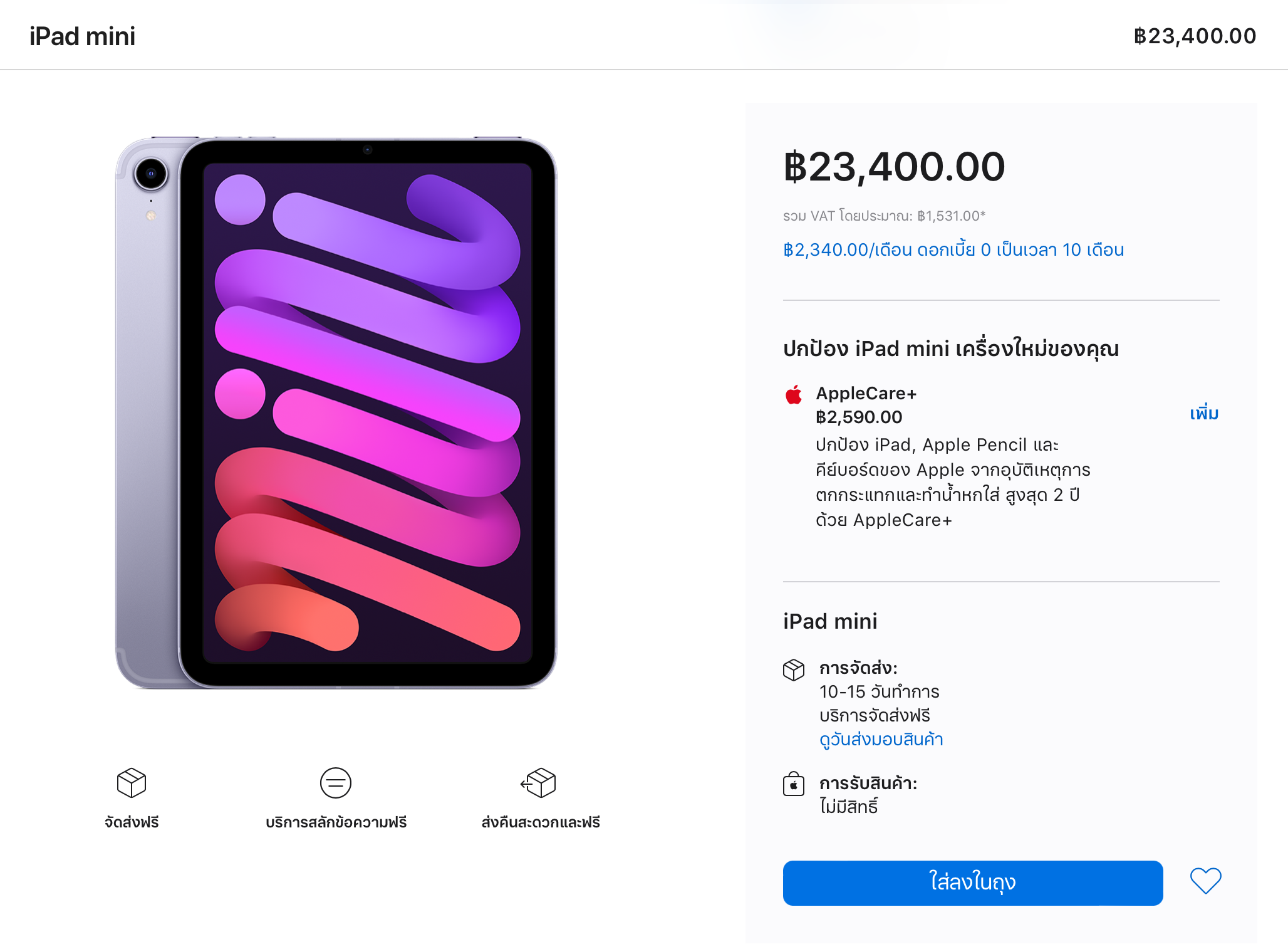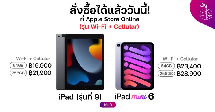 iPad รุ่นที่ 9, iPad mini 6 รุ่น Wi-Fi + Cellular สั่งซื้อได้แล้วที่ Apple Store Online ไทย