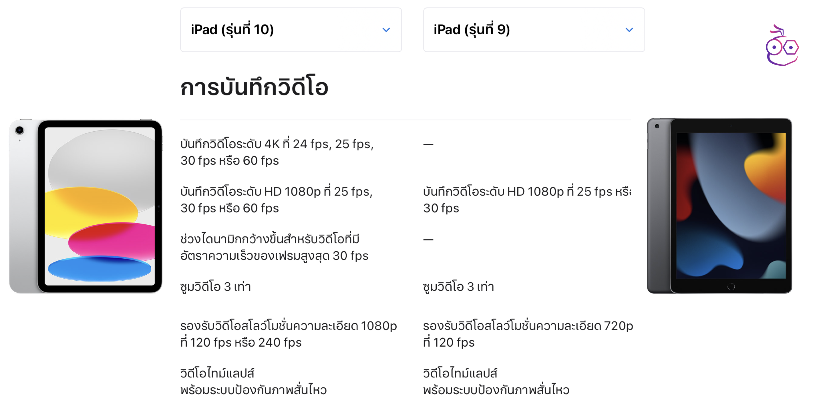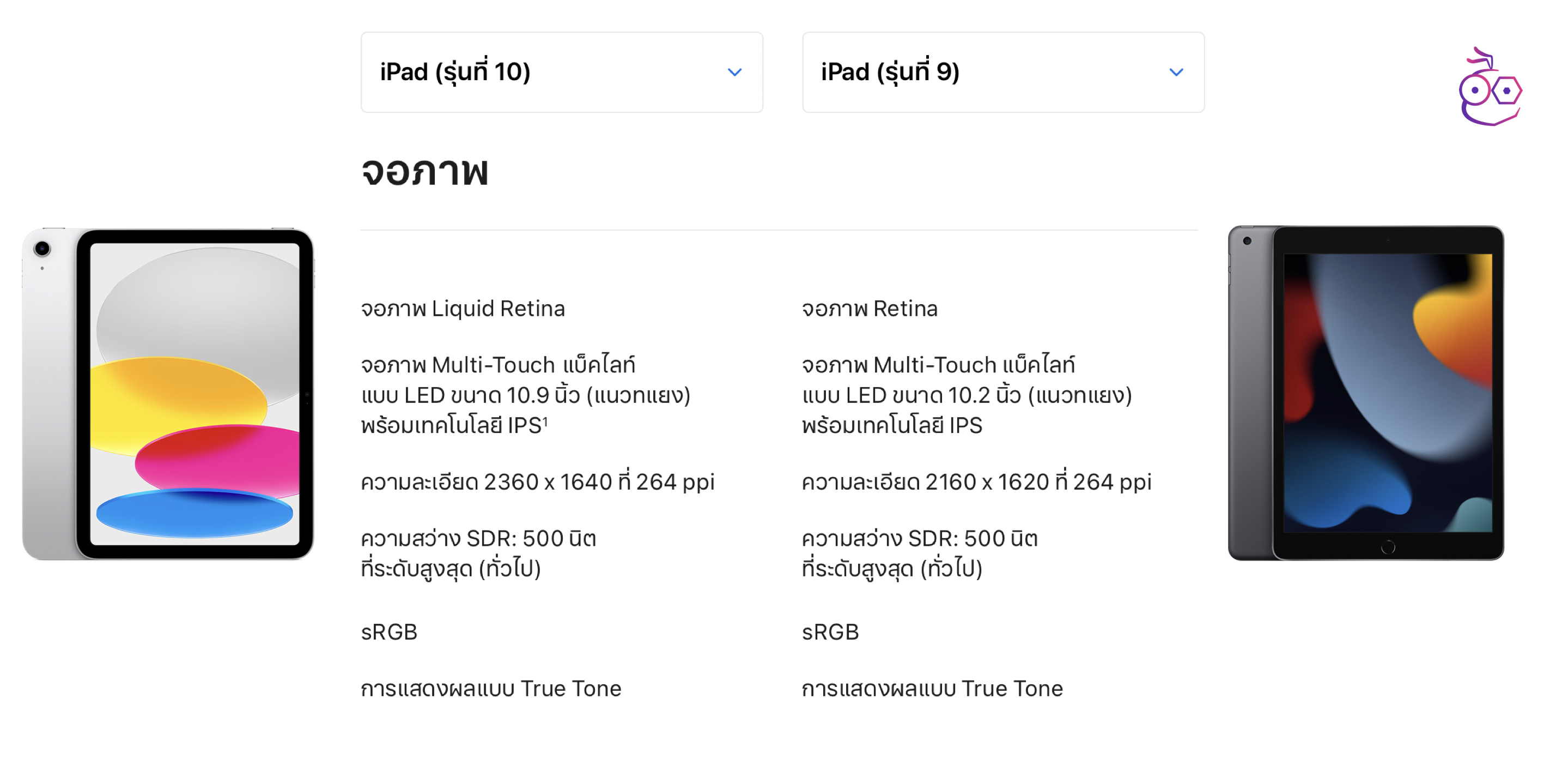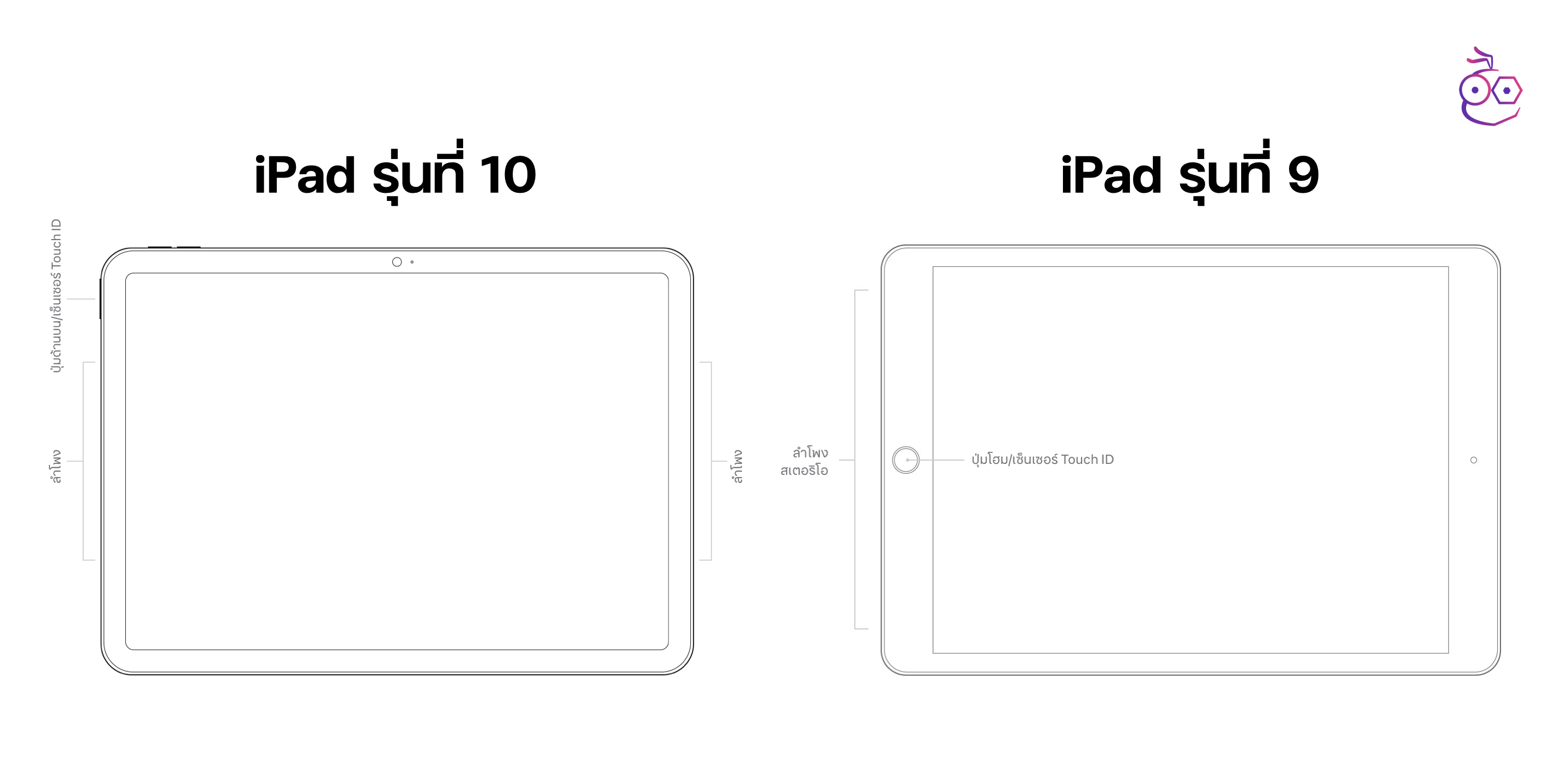 | iPad รุ่นที่ 9 | iPad รุ่นที่ 10 | |