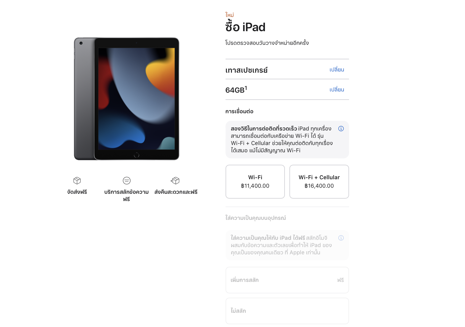 หน้าการสั่งซื้อออนไลน์ : iPad รุ่นที่ 9