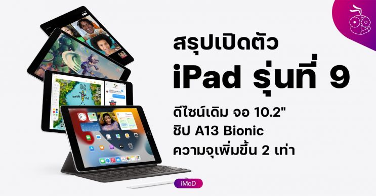 15 ก.ย 64, Apple เปิดตัว iPad รุ่นที่ 9 ในงาน California streaming ที่ผ่านมา ใช้ดีไซน์เดิม จอ 10.2″ ชิป A13 Bionic ความจุเพิ่มขึ้น 2 เท่า พร้อม Center Stage