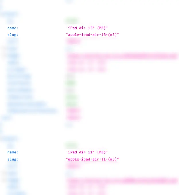 Evan Blass ได้เผยภาพหน้าจอคาดว่าเป็นชุดคำสั่ง (Source Code) บางอย่าง โดยหนึ่งในนั้นได้ระบุถึง iPad Air 11″, 13″ ชิป M3 และ iPad 11 จึงเป็นไปได้ว่า iPad Air รุ่นใหม่ปี 2025 อาจมาพร้อมชิป M3