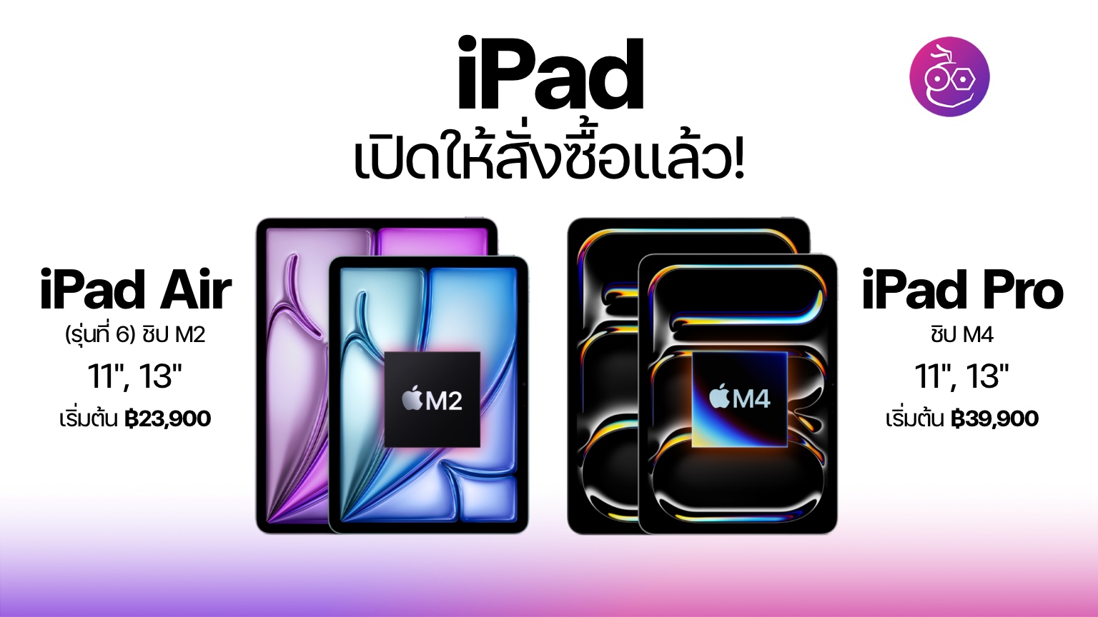 Apple ได้เปิดให้สั่งซื้อ iPad Air (รุ่นที่ 6) ชิป M2, iPad Pro ชิป M4 ในไทยแล้ว ทีมงานได้รวบรวมข้อมูลที่ควรทราบเกี่ยวกับการสั่งซื้อมาให้ติดตามกัน