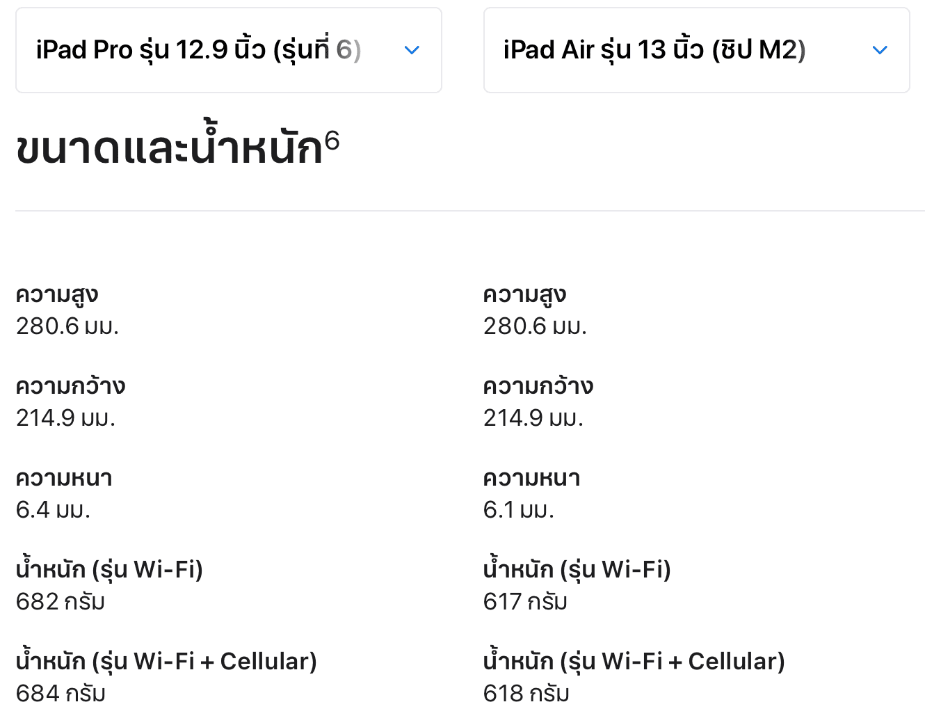 🟠 iPad Pro ชิป M2 12.9″ > iPad Air (รุ่นที่ 6) 13″