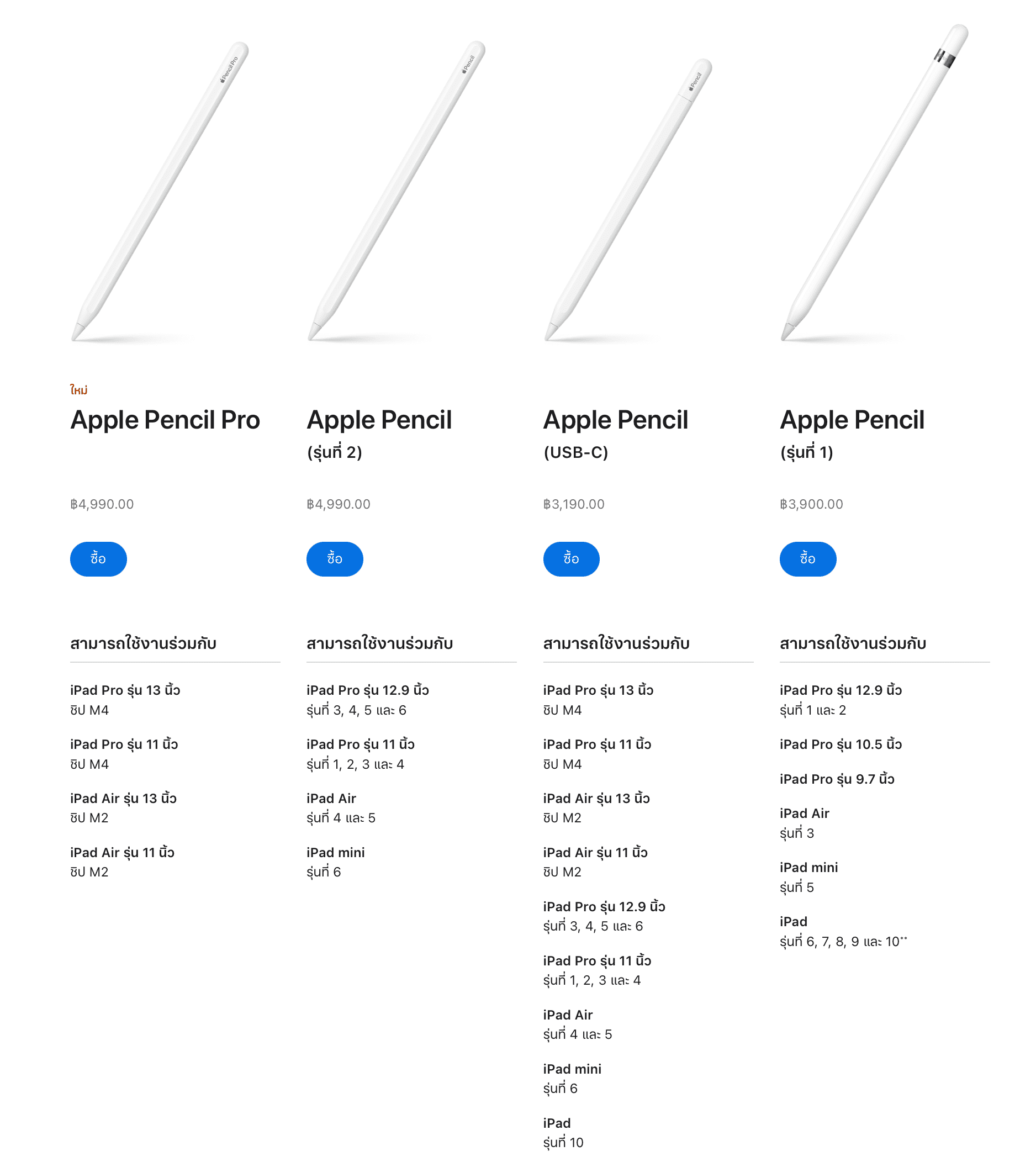 iPad Air (รุ่นที่ 6) ชิป M2, iPad Pro ชิป M4 รองรับ Apple Pencil ดังนี้