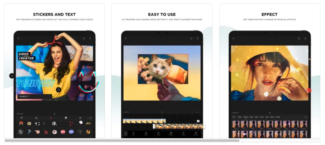 แอปตัดต่อวิดีโอที่นิยมใช้ตัดต่อวิดีโอลงโซเชียลมีเดีย เช่น TikTok, Reel, Shorts, YouTube เป็นต้น ใช้งานง่าย เหมาะสำหรับผู้เริ่มต้นอย่างนักเรียน นักศึกษา สามารถใช้แอปตัดต่อวิดีโอนำเสนอผลงานต่าง ๆ ได้
