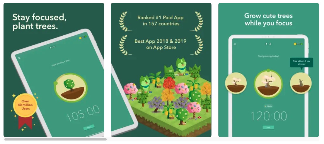 แอปที่จะทำให้เรามีสมาธิและบล๊อคไม่ให้เรากดไปเล่นโทรศัพท์หรือแอปอื่นๆ ตามเวลาที่กำหนดไว้ ด้วยการปลูกต้นไม้ไว้ในแอป Forest ซึ่งเราสามารถกำหนดเวลาได้ว่าจะให้เติบโตในกี่นาทีเช่น 10 นาทีหรือ 2 ชั่วโมง โดยต้นไม้ก็จะโตไปเรื่อยๆ ตามเวลาที่กำหนด หากเรายอมแพ้หยิบโทรศัพท์หรือ iPad ขึ้นมาเล่นซะก่อน ต้นไม้ก็จะเหี่ยวเฉาและตายไปในที่สุด