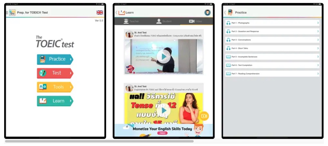 ใครอยากฝึกโทอิกมาทางนี้!! แอป CM TOEIC® MASTER ช่วยได้ เหมาะสำหรับผู้ที่ต้องการฝึกฝนและพัฒนาภาษาอังกฤษได้อย่างรวดเร็ว สามารถฝึกฝนทั้งส่วนการฟังและการอ่านได้ทุกที่ทุกเวลา คำตอบมีคำอธิบายทั้งภาษาไทยและอังกฤษเพื่อความเข้าใจมากยิ่งขึ้น การทดสอบภายในแอปเป็นการจำลองสถานการณ์ให้คล้ายกับการสอบจริงที่จะทำให้เราได้เตรียมความพร้อมก่อนจะเข้าทดสอบจริงด้วย