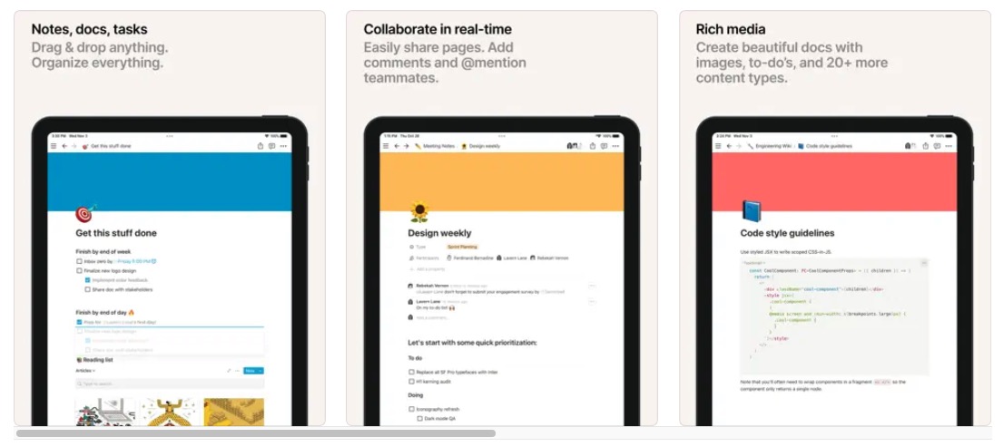 Notion เป็นเครื่องมือ Productivity ช่วยให้เราบริหารจัดการงาน วางแผนงาน จดโน้ต สิ่งที่ต้องทำต่าง ๆ ได้แบบ All in one เปิดแอปเดียวก็สามารถจัดการงานทุกอย่างได้เลย แอปค่อนข้างยืดหยุ่น ให้ผู้ใช้สร้างแบบแผนเอง ซึ่งการใช้งานครั้งแรกอาจจะยุ่งยากหน่อยสำหรับผู้เริ่มต้น แต่ก็มีเพื่อน ๆ ใจดีปล่อยเทมเพลตน่ารัก ๆ ให้ดาวน์โหลดใช้งานฟรีมากมาย