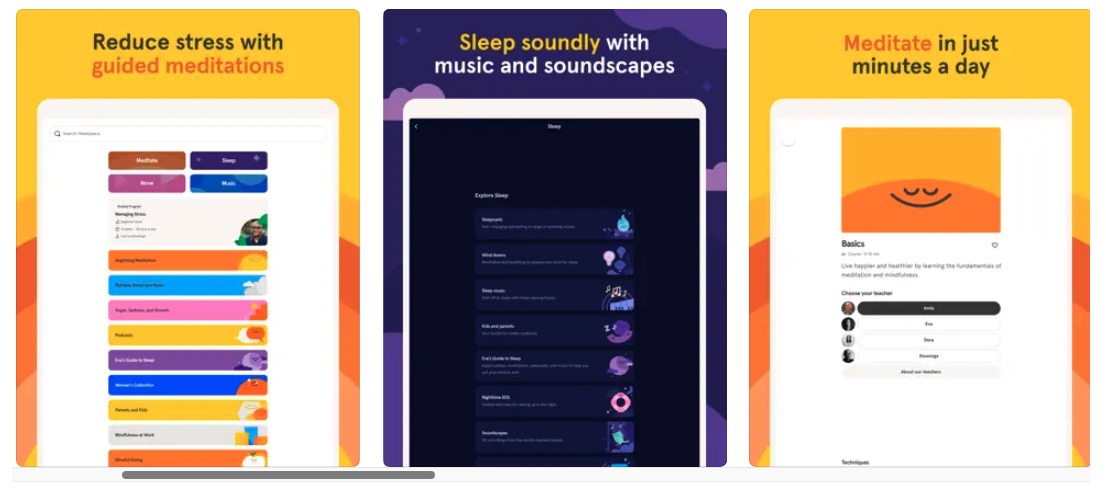 Headspace แอปฝึกสมาธิ ที่มาพร้อมขั้นตอนการฝึกที่ชัดเจน ทั้งขั้นตอนการฝึกสมาธิ สติ และการออกกำลังกายที่ส่งผลต่ออารมณ์ ช่วยลดความวิตกกังวล ปรับการนอนหลับให้ดีขึ้นด้วยเสียงดนตรีผ่อนคลาย สร้างความสมดุลทุกด้านของชีวิต ด้วยการปรับเปลี่ยนกิจวัตรประจำวัน แอปนี้อาจจะช่วยเรื่องของอารมณ์ ความเครียด สมาธิ ของนักเรียนและนักศึกษาได้