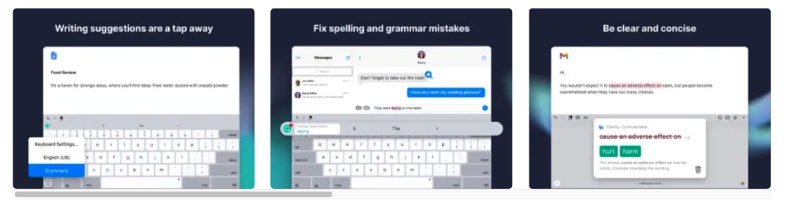 Grammarly แอปช่วยตรวจสอบคำพูดหรือประโยคด้านแกรมม่าภาษาอังกฤษ ที่สามารถช่วยตรวจสอบประโยคภาษาอังกฤษที่เราพิมพ์ว่าถูกต้องหรือไม่ และมีส่วนไหนที่ผิดบ้าง รวมถึงรองรับการใช้งานร่วมกับแป้นพิมพ์ iPhone, iPad สามารถตรวจสอบแกรมม่าระหว่างที่เราพิมพ์ประโยคได้แบบเรียลไทม์
